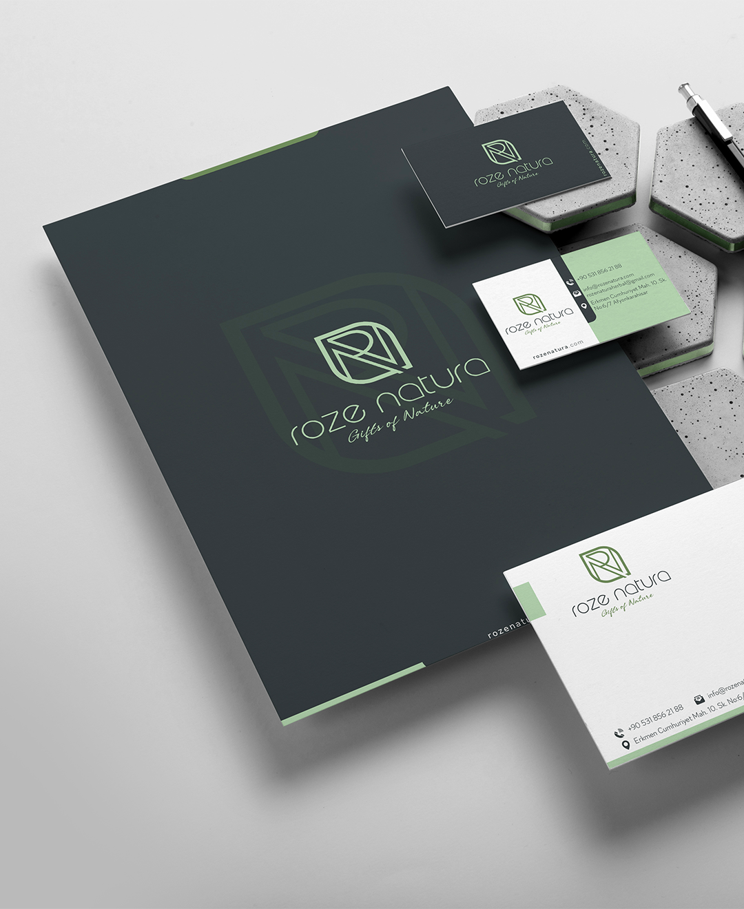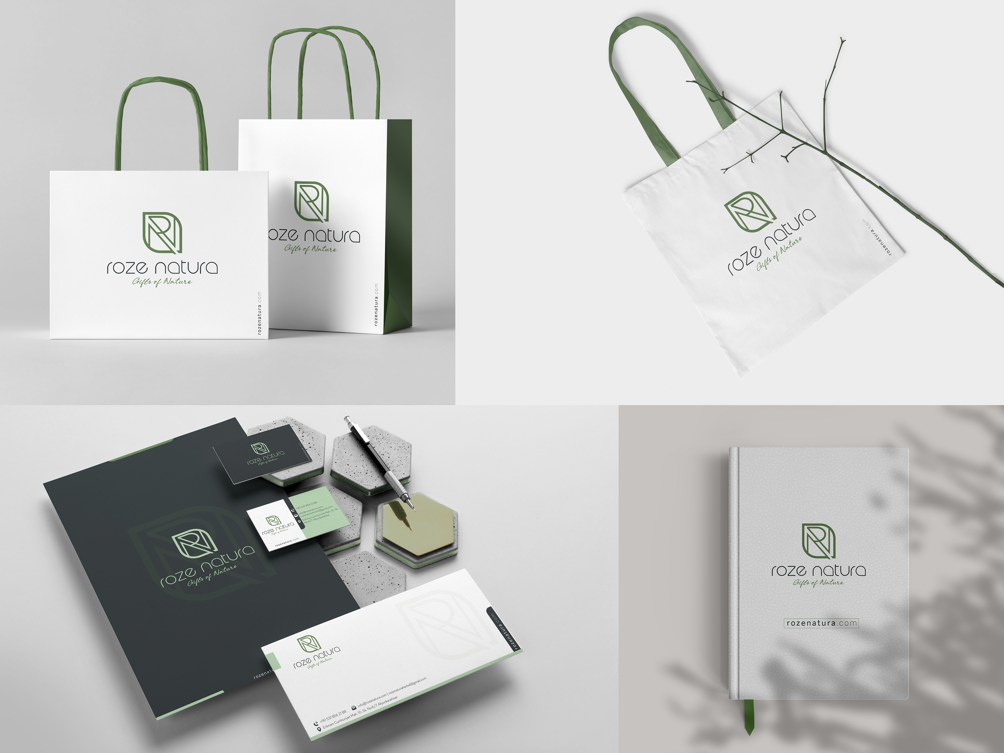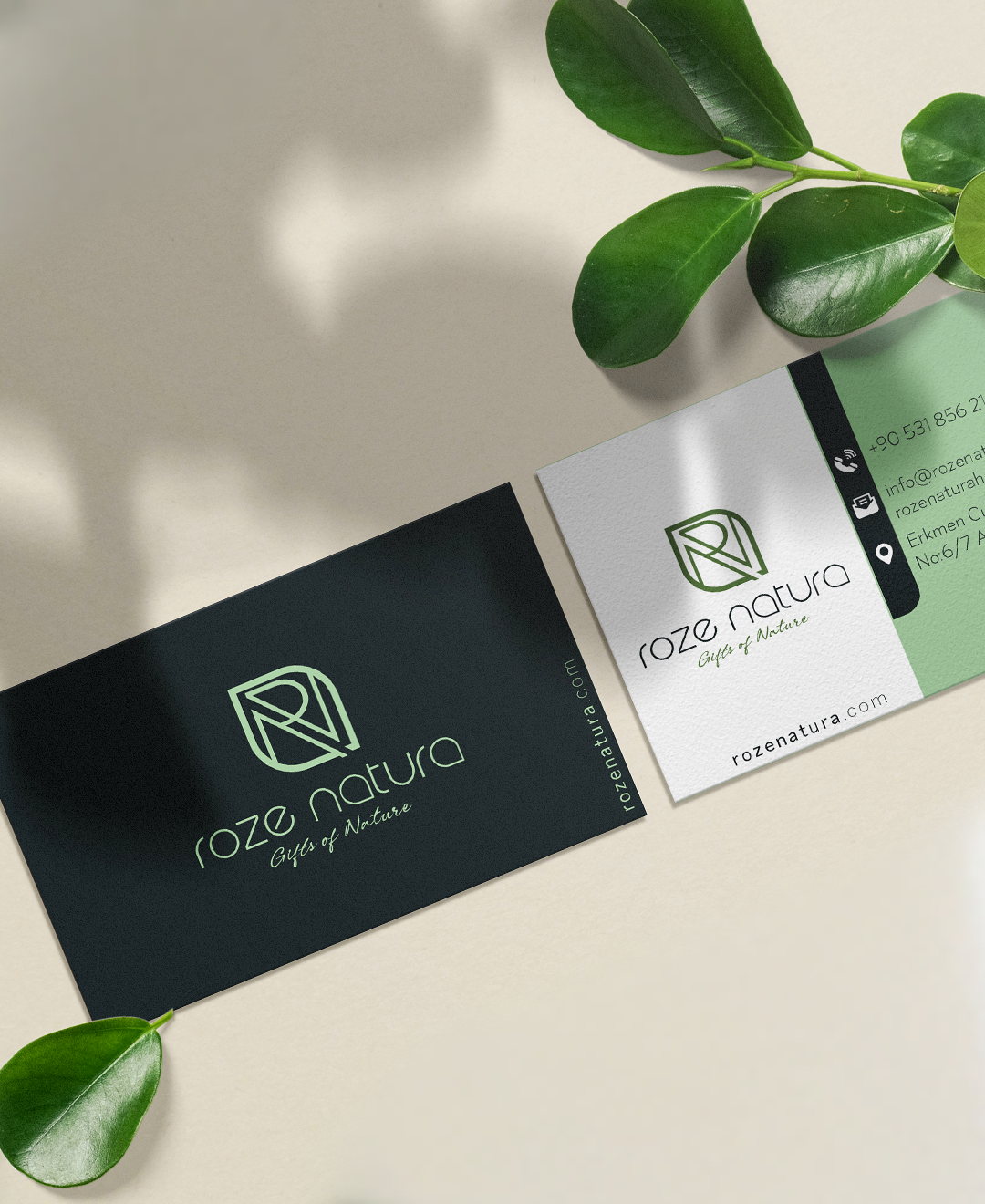 Brand Identity & Label Design Phoebe Creative developed the visual identity, logo, and product label system for Roze Natura, a brand rooted in natural care and botanical inspiration. The logo combines a leaf—widely recognized as a universal symbol of nature—with the brand’s initials R and N, forming a strong typographic mark that feels both organic and refined. The symbol balances emotional storytelling with clear brand recognition, allowing the icon to stand on its own across digital platforms, packaging, and social media. Beyond the logo, we designed a cohesive label system that reflects the brand’s calm, nature-driven philosophy while maintaining a clean, contemporary aesthetic. The result is a visual identity that feels recognizable, timeless, and aligned with Roze Natura’s natural values.